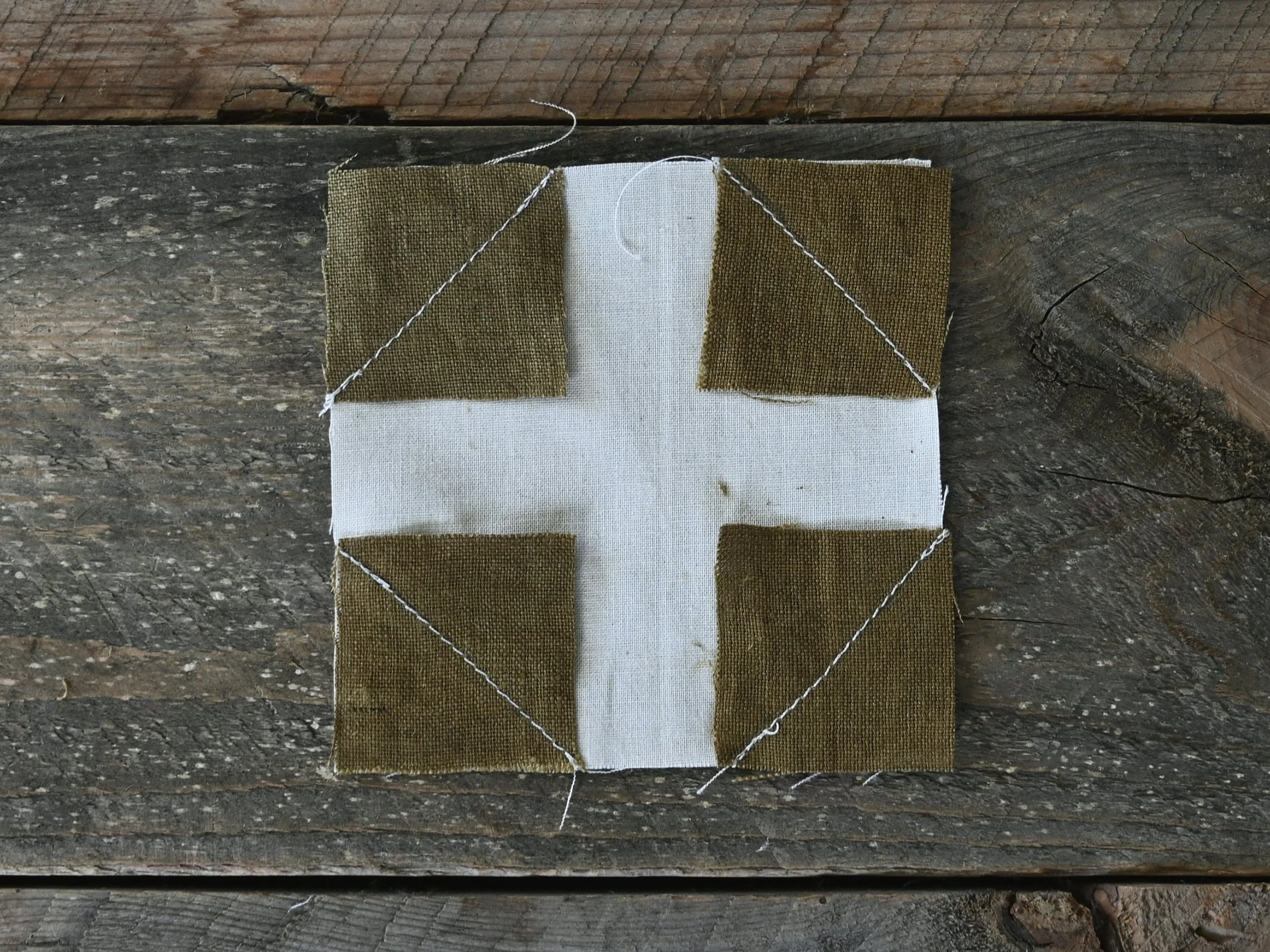 Sew along each diagonal line as shown below.